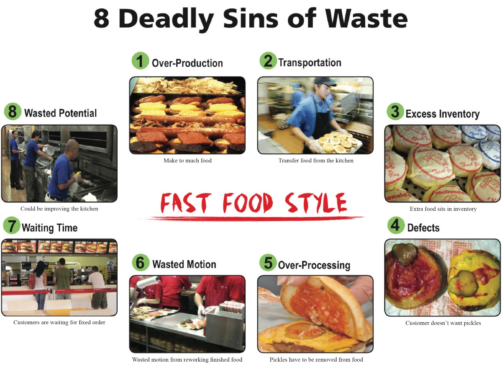 - Wasted Motion — unnecessary movements by people (e.g. walking)